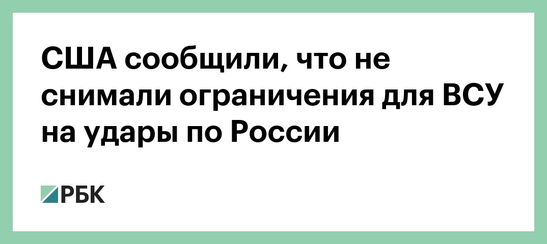 Соединенные Штаты не отменяли действующих ограничений для Вооруженных сил Украины на использование американского оружия при ударах вглубь российской территории, сообщил на брифинге представитель Пентагона Патрик Райдер. Трансляция шла в X (бывшем Twitter).