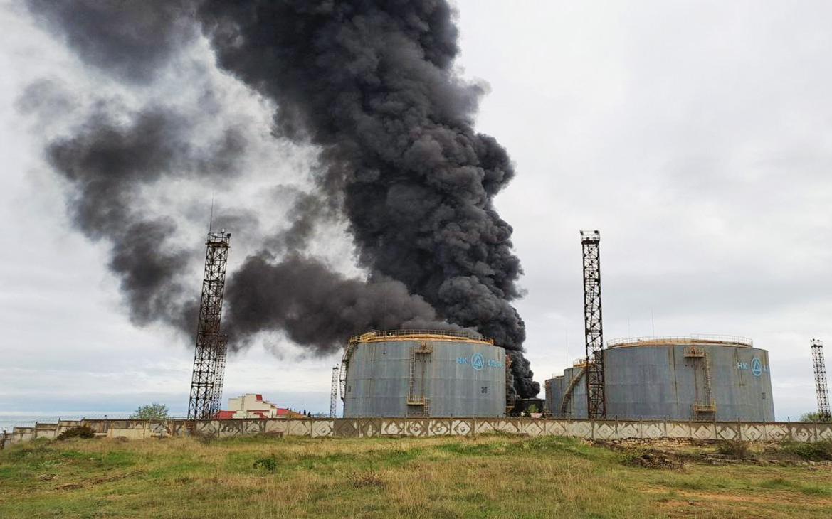 В Казачьей бухте в Севастополе загорелся резервуар с топливом, возгорание, по предварительным данным, началось после удара беспилотника, рассказал губернатор города Михаил Развожаев.