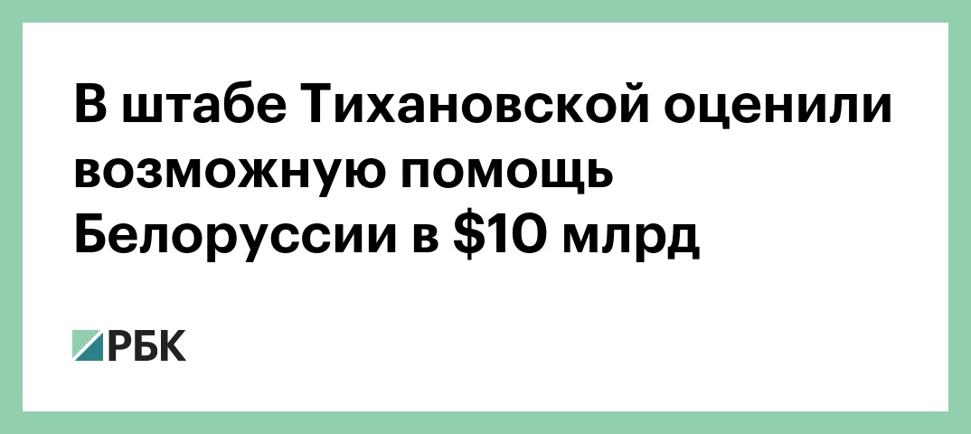ЕС разработал пакет помощи республике в размере €3 млрд в случае смены власти. Эта сумма, считают в штабе Тихановской, может вырасти до $10 млрд, если к оказанию помощи подключатся другие страны и международные организации