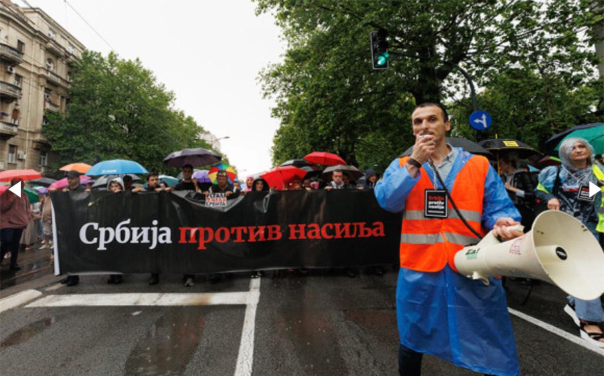 Протесты начались после инцидентов с массовой стрельбой в сербских школах — 3 мая 13-летний подросток убил девять человек в школе в Белграде, на следующий день произошла еще одна массовая стрельба. Ее открыл в селе Дубона 21-летний молодой человек, во время стрельбы погибли восемь человек. Власти объявили трехдневный траур.