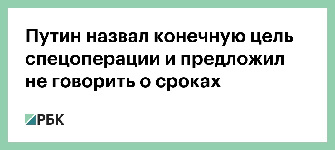 Президент заявил, что конечной целью военной операции на Украине является освобождение Донбасса и гарантии безопасности для самой России. О сроках завершения операции говорить не стоит, подгонять военных — неправильно, добавил он