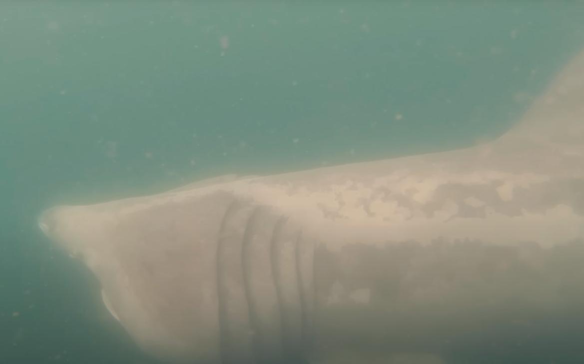 Акула находилась на мелководье у берегов Ирландии, когда ее задел киль проплывавшего мимо судна. На кадрах видно, что у акулы оказалась рассечена спина сразу за плавником.