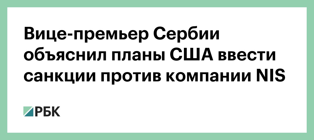 Президент Сербии заявил, что США в ближайшее время могут ввести санкции против NIS (более чем на половину принадлежит «Газпрому»). Вице-премьер связал эти планы с попыткой надавить на страну, чтобы та ввела санкции против России