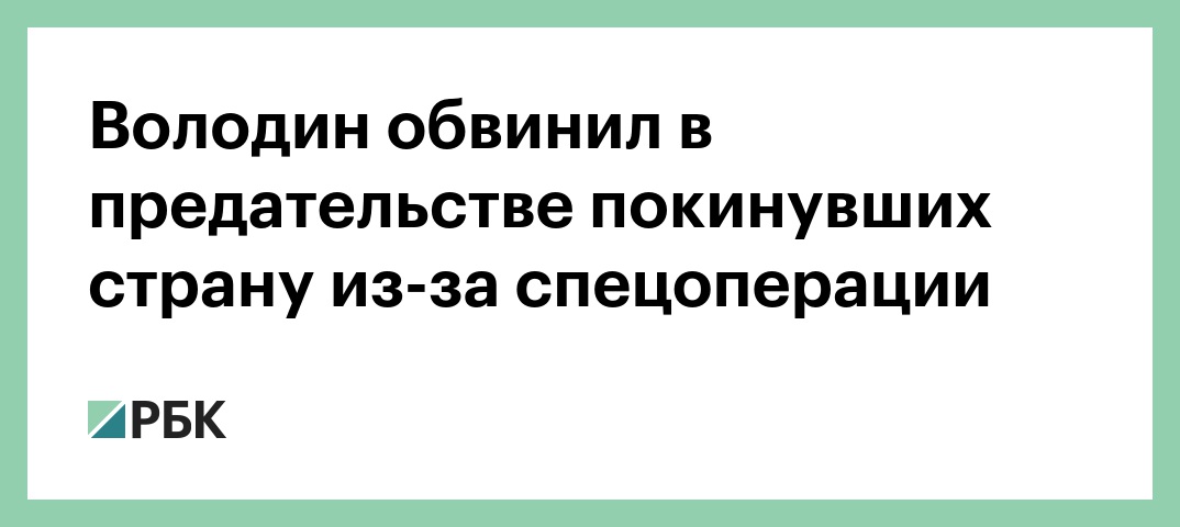 Володин обвинил в предательстве покинувших страну из-за спецоперации