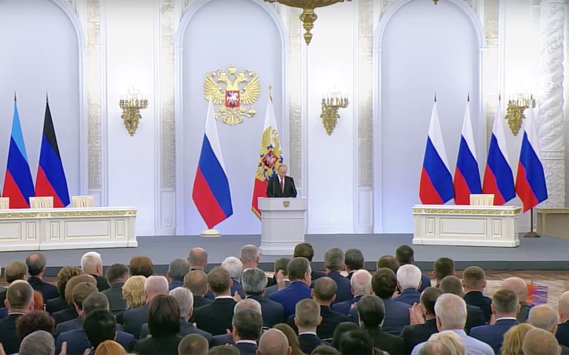 В Кремле выступил президент Владимир Путин и подписал договоры о вступлении в Россию ДНР, ЛНР, Херсонской и Запорожской областей. РБК вел прямую трансляцию.