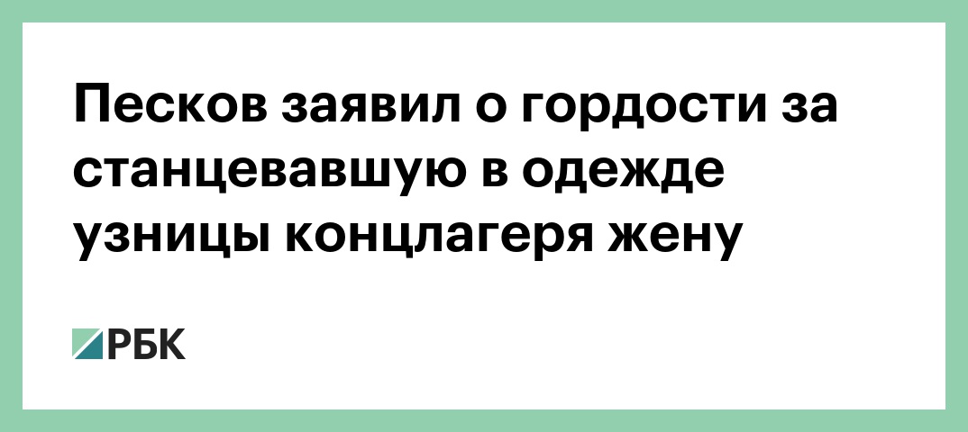 По его словам, этот вопрос не касается Кремля. Песков добавил: «В силу своей работы я существенно ограничен это комментировать». «Я горжусь своей женой, вот все, что я могу сказать», — заключил он.