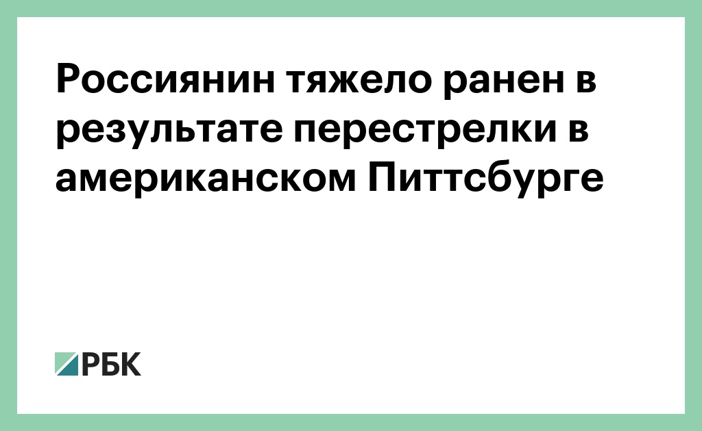 Россиянин был тяжело ранен в результате перестрелки в американском Питтсбурге (штат Пенсильвания). Как сообщает генконсульство России в Нью-Йорке, мужчина проезжал мимо места конфликта в автомобиле.