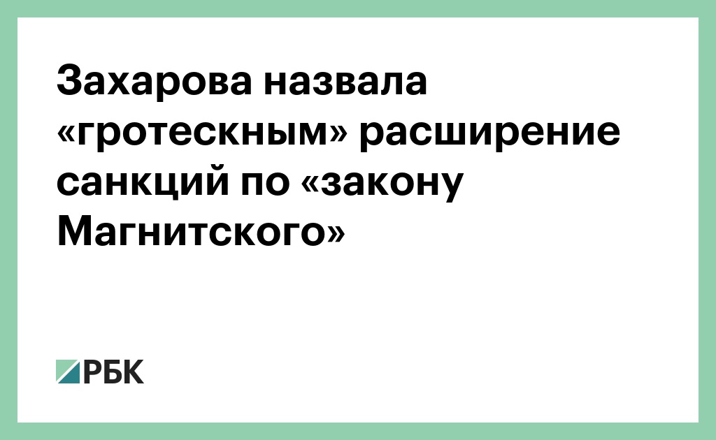 Захарова назвала «гротескным» расширение санкций по «закону Магнитского»