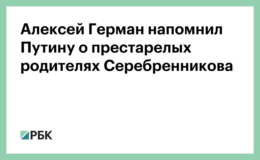 «Вы знаете, что у Кирилла Серебренникова очень пожилые родители. Отцу 84 года, у мамы болезнь Альцгеймера, официально он не является их опекуном. Поэтому он не может помогать, у него заморожены счета, он не может переводить деньги и я очень боюсь, что он просто может не застать в живых отца или маму», — сказал Алексей Герман-младший.