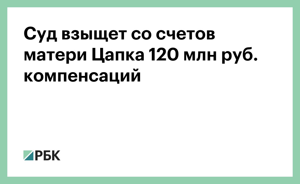 Суд взыщет со счетов матери Цапка 120 млн руб. компенсаций