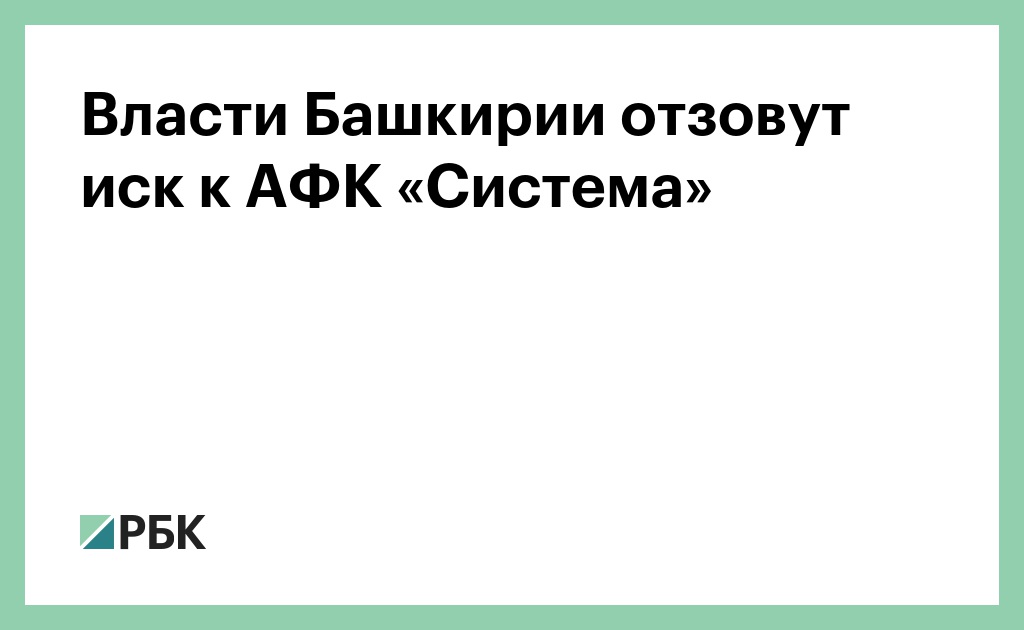 Власти Башкирии отзовут иск к АФК «Система»