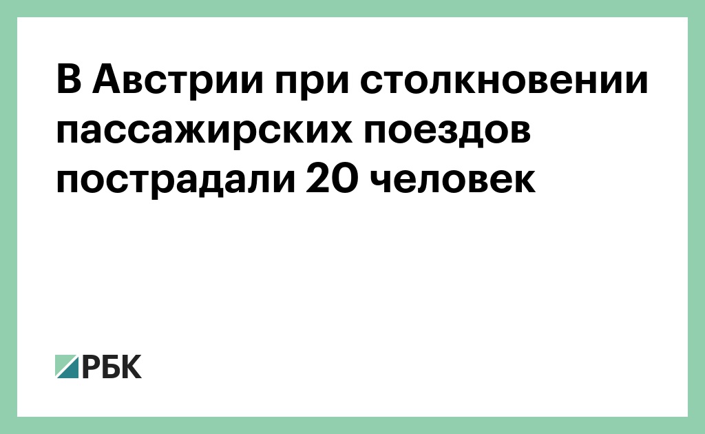 В Австрии в результате столкновения двух пассажирских поездов пострадали 20 человек. Об этом сообщают экстренные службы, передает телерадиокомпания Österreichischer Rundfunk.