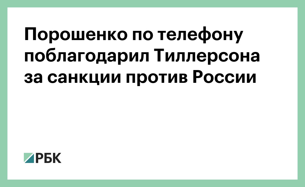 Президент Украины Петр Порошенко в телефонном разговоре поблагодарил государственного секретаря США Рекса Тиллерсона за санкции против России. Об этом сообщается на сайте украинского лидера.