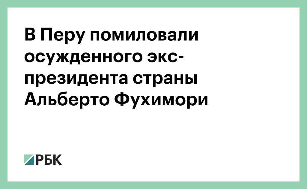 Президент Перу Педро Кучински подписал помилование для экс-главы страны Альберто Фухимори, который был приговорен к 25-летнему заключению за злоупотребление властью и нарушения прав человека. Об этом говорится в сообщении пресс-службы президента Перу.