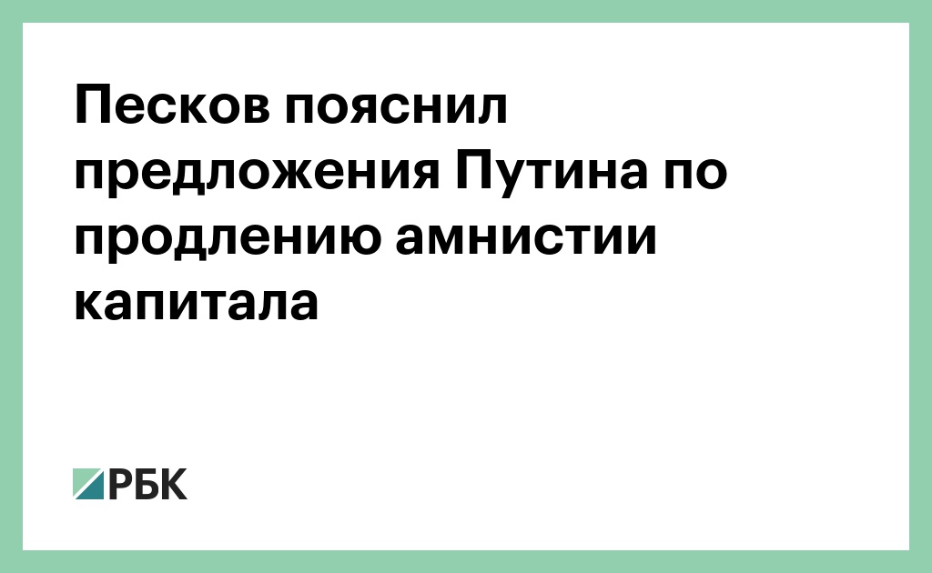 Предложение президента России Владимира Путина продлить амнистию капитала и освободить бизнес от налогов при переводе компаний из-за рубежа в Россию направлено на защиту активов от возможных посягательств западных стран. Об этом заявил пресс-секретарь президента Дмитрий Песков, передает корреспондент РБК.