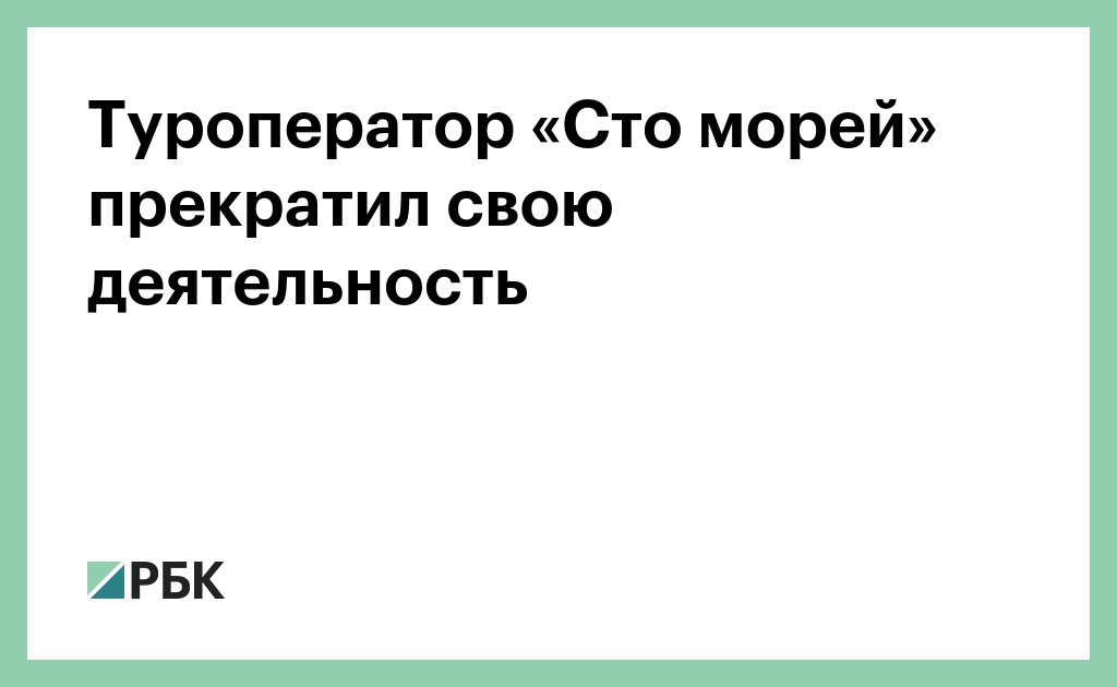 Туроператор «Сто морей» объявил, что прекращает свою деятельность. «По независящим от нас обстоятельствам, да и как часто бывает в нашей суровой жизни, ООО «Сто морей» наткнулись на огромнейшие сложности и преграды, которые просто не дают ни малейшей возможности на дальнейшее функционирование нашей компании», — говорится на сайте туроператора.
