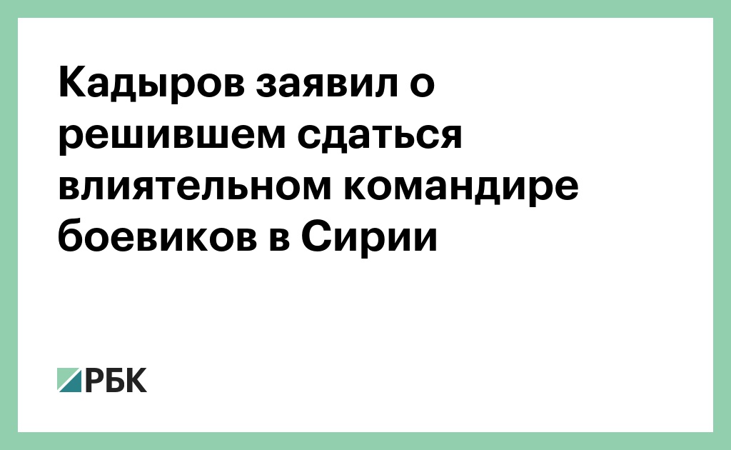 Кадыров заявил о решившем сдаться влиятельном командире боевиков в Сирии