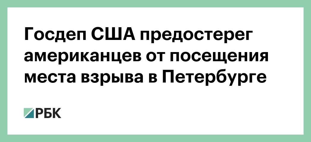 «СМИ сообщают о взрыве в торговом центре в Санкт-Петербурге. Граждане США должны избегать этого района и следить за новостями для получения новой информации», — говорится в сообщении.\