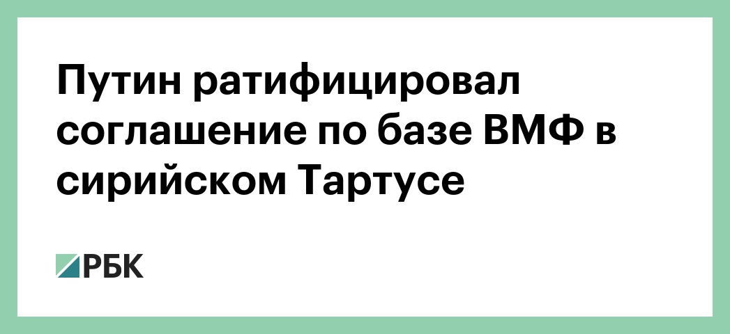 Президент России Владимир Путин подписал закон о ратификации соглашения с Сирией, который предусматривает расширение территории пункта материально-технического обеспечения российского Военно-морского флота (ВМФ) в районе сирийского порта Тартус. Соответствующий документ размещен на официальном портале правовой информации.