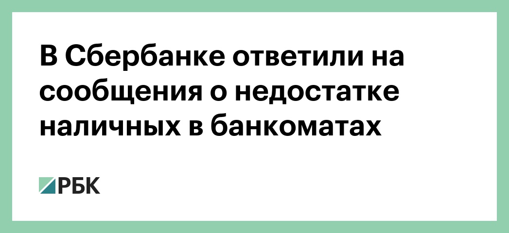 В пресс-службе отметили, что проблем с наличными деньгами в Сбербанке «не существует». «В предновогодний период банк традиционно наблюдает повышенный спрос на наличные деньги. В ситуации, когда наличные средства заканчиваются в отдельных устройствах, служба инкассации банка оперативно осуществляет их доставку и обеспечение банкоматов и офисов», — подчеркнул собеседник РБК.