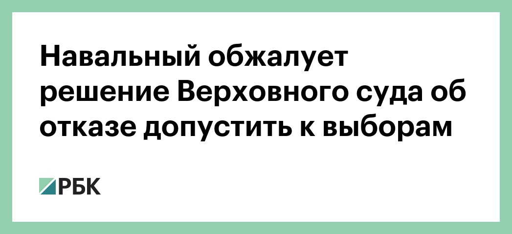 Оппозиционер Алексей Навальный обжалует решение Верховного суда России об отказе допустить его до выборов президента, сообщил РБК юрист Фонда борьбы с коррупцией (ФБК), основателем которого является Навальный, Иван Жданов.
