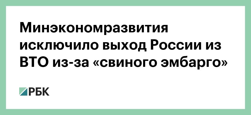 Минэкономразвития исключило выход России из Всемирной торговой организации (ВТО) из-за спора об ограничениях на импорт свинины из Евросоюза. Об этом говорится в сообщении министерства, поступившем в РБК.