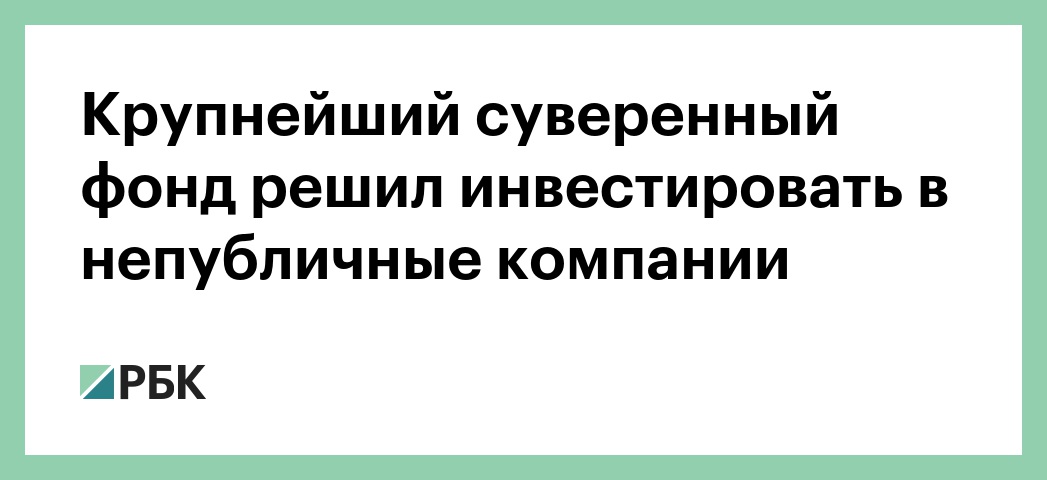 Крупнейший суверенный фонд решил инвестировать в непубличные компании