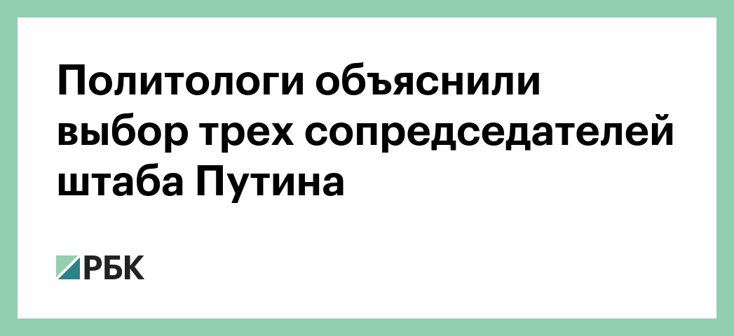 Наличие нескольких сопредседателей предвыборного штаба кандидата в президенты Владимира Путина позволит создать «ощущение поддержки со стороны разных групп, широкой коалиции». Об этом РБК заявил директор Центра экономических и политических реформ Николай Миронов.