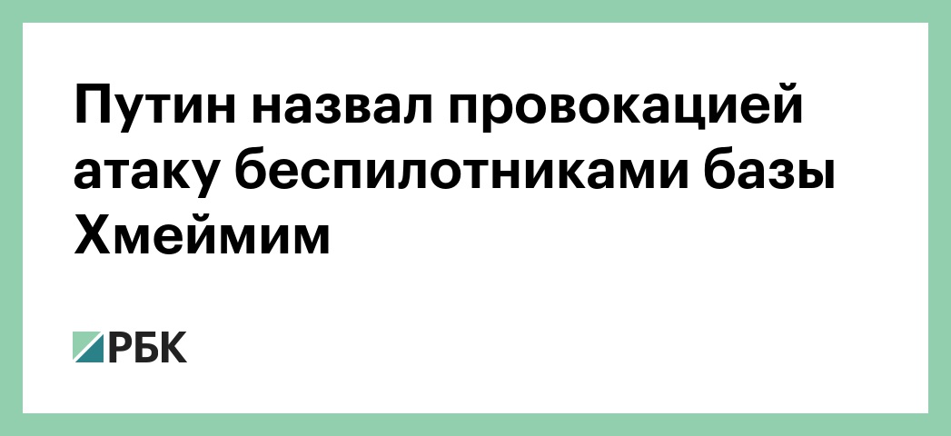 Президент Владимир Путин назвал провокацией атаку беспилотниками российской базы Хмеймим в Сирии. Об этом он сообщил в ходе встречи с руководством российских печатных СМИ и информагентств, трансляцию с этого мероприятия вел телеканал «Россия 24».