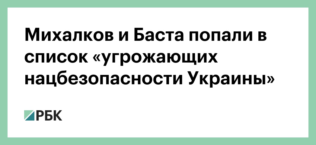 Российский кинорежиссер Никита Михалков и рэпер Баста (Василий Вакуленко) попали в перечень лиц, которые создают «угрозу национальной безопасности Украины». Решение приняло Министерство культуры Украины на основании обращения Службы безопасности Украины (СБУ). Об этом говорится в приказе, который опубликован на сайте министерства.