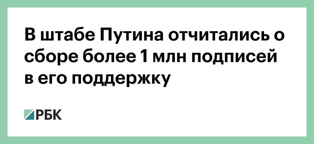 В штабе Путина отчитались о сборе более 1 млн подписей в его поддержку