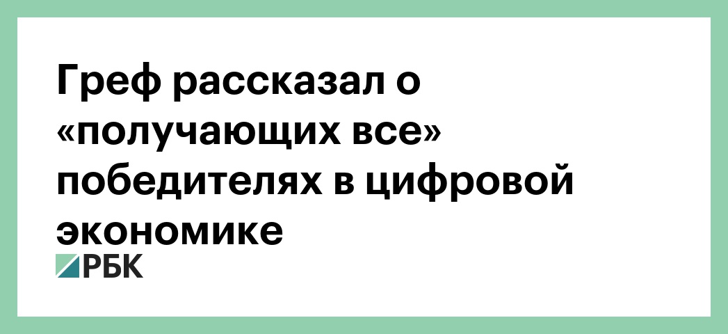 «В цифровой экономике есть три цифры 60, 30, 10. Любой цифровой игрок знает. Цифровая экономика характерна тем, что она приводит к тому, что победитель получает все. Первый игрок 60, второй игрок 30, 10 — все остальные», — заявил Греф.
