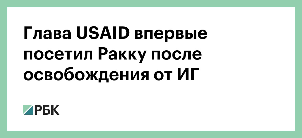 Глава Агентства США по международному развитию (USAID) Марк Грин впервые посетил сирийскую Ракку после освобождения этого района от боевиков террористической организации «Исламское государство» (запрещена в России), сообщает Reuters.