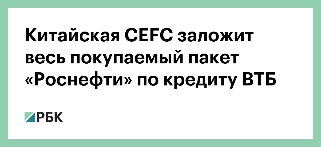 Китайская CEFC заложит весь покупаемый пакет «Роснефти» по кредиту ВТБ