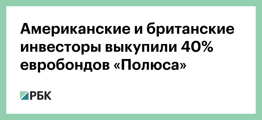 Американские и британские инвесторы выкупили 40% евробондов «Полюса»