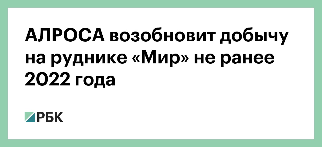 Алмазодобывающая компания АЛРОСА может возобновить добычу на руднике «Мир», работа которого была остановлена летом 2017 года из-за аварии, не ранее 2022 года. Об этом журналистам в кулуарах Всемирного экономического форума в Давосе рассказал гендиректор компании Сергей Иванов, сообщает ТАСС.