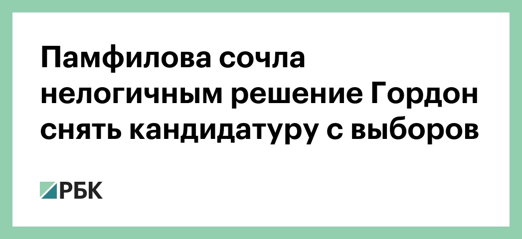 По словам Памфиловой, она получила сообщение о намерении Гордон снять кандидатуру с выборов. «Странно, до этого она участвовала, и никаких препятствий не было, и подписи собрала», — прокомментировала она. Глава ЦИК добавила, что не видит логики в том, чтобы провести такую часть кампании и не участвовать.