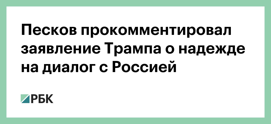Таким образом Песков прокомментировал слова Трампа, которые он озвучил на экономическом форуме в Давосе. Американский лидер сказал, что планирует выстраивать диалог с Россией.