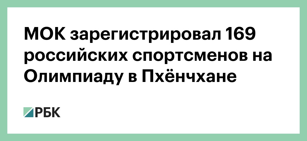 Международный олимпийский комитет подтвердил РБК регистрацию 169 российский спортсменов. Как отметил в МОК, они были выбраны из 389 олимпийцев, которые потенциально могли принять участие в Играх.