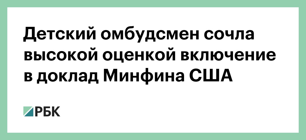 Детский омбудсмен сочла высокой оценкой включение в доклад Минфина США