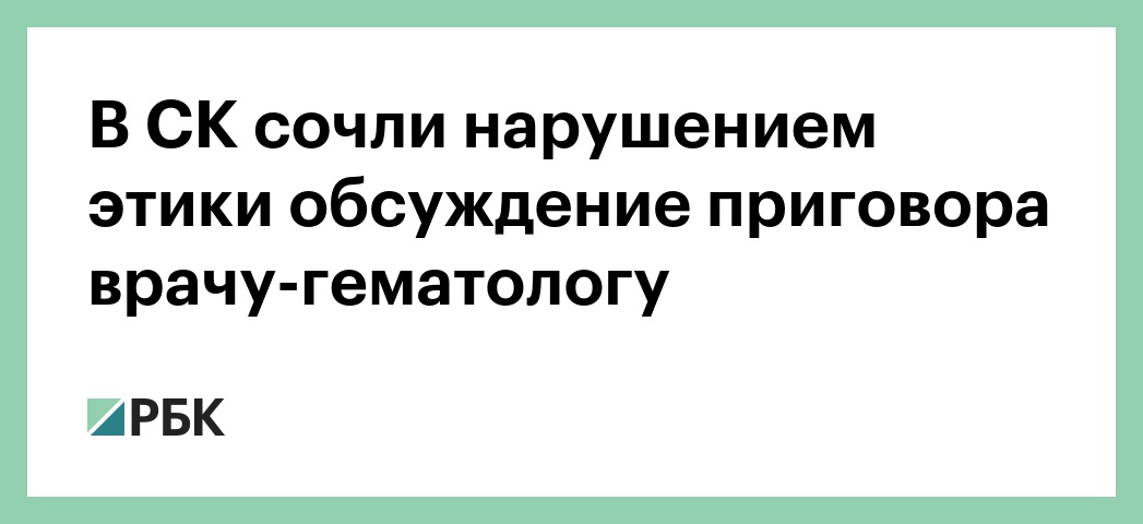 В СК сочли нарушением этики обсуждение приговора врачу-гематологу