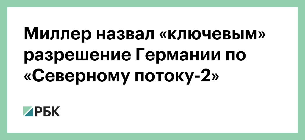 «Это ключевое решение открывает возможность начать строительство самого важного участка нового морского газопровода «Северный поток-2» в территориальных водах Германии и берегового приемного терминала в Грайфсвальде», — сказал Миллер.