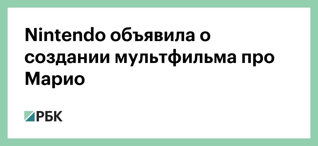 Японская компания Nintendo, занимающаяся производством видеоигр и приставок, и Illumination Entertainment (подразделение Universal Studios) создадут мультфильм по мотивам игры Super Mario Brothers. Об этом сообщается в Twitter Nintendo.