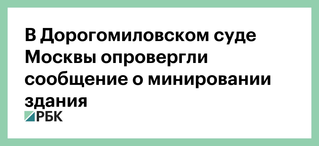 В пресс-службе Дорогомиловского районного суда Москвы опровергли РБК появившуюся ранее в СМИ информацию о поступившем в учреждение звонке о заложенном взрывном устройстве.