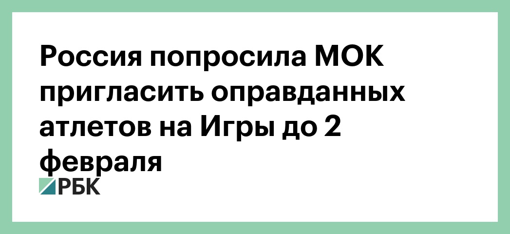 По словам Позднякова, просьба касается 15 человек из 28 оправданных спортсменов. «ОКР обращается в МОК и убедительно просит не позднее 2 февраля направить индивидуальные приглашения для участия в Играх Александру Третьякову, Елене Никитиной, Марии Орловой, Сергею Чудинову (все — скелетон), Александру Легкову, Евгению Белову, Максиму Вылегжанину, Александру Бессмертных, Евгении Шаповаловой, Наталье Матвеевой (все — лыжные гонки), Ольге Фаткулиной, Александре Румянцевой, Артему Кузнецову (все — конькобежный спорт), Татьяне Ивановой, Альберту Демченко (оба — санный спорт)», — рассказал вице-президент ОКР.