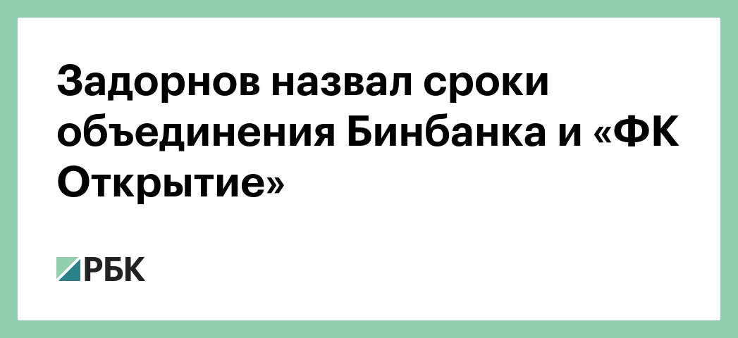 «Говорить о том, что будет с брендом Бинбанка после объединения, пока преждевременно <...> Точная дата его начала [объединения] пока неизвестна. Докапитализирован будет Бинбанк», — добавил Задорнов.
