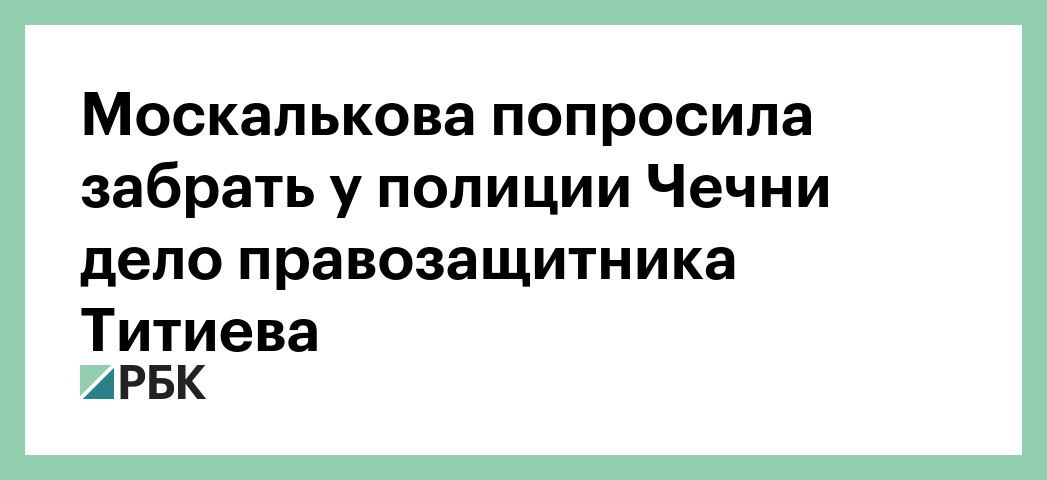 Уполномоченный по правам человека Татьяна Москалькова попросила забрать у чеченской полиции дело главы грозненского отделения правозащитного центра «Мемориал» Оюба Титиева. Об этом РБК сообщил замуправделами уполномоченного Иван Соловьев.