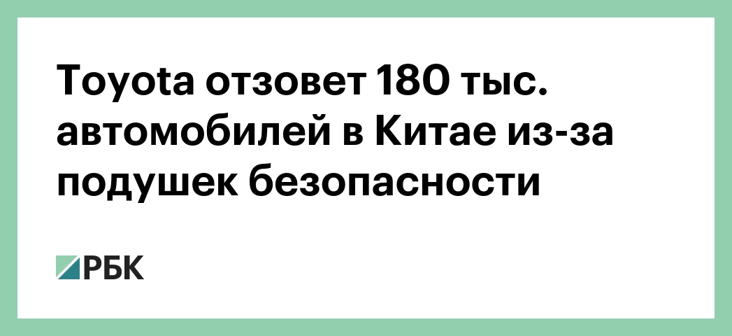 Toyota отзовет 180 тыс. автомобилей в Китае из-за подушек безопасности