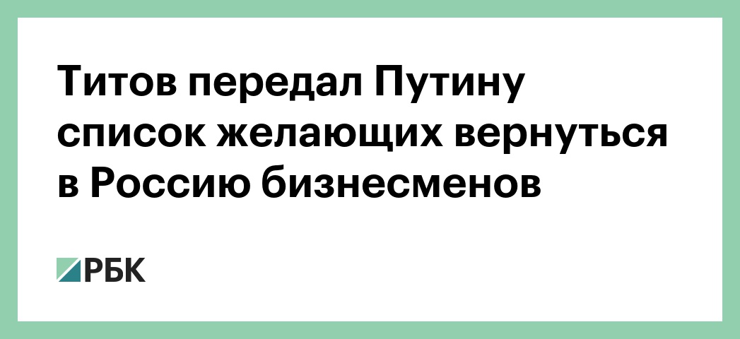 В пресс-службе Партии роста РБК подтвердили передачу Титовым президенту списка бизнесменов, желающих вернуться в Россию.