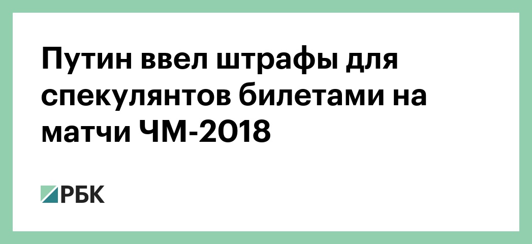Президент России Владимир Путин подписал федеральный закон, вводящий административную ответственность за незаконную продажу билетов и продажу поддельных билетов на матчи чемпионата мира по футболу 2018 года. Закон опубликован на интернет-портале правовой информации.